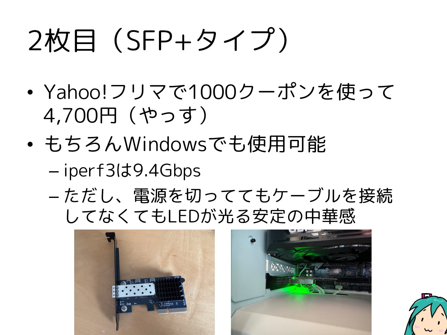 • RJ-45、SFP+の両方が存在 – RJ-45は用途等に応じて3種類ある • 出典: https://note.com/ragemax/n/n880e02 26fe3c