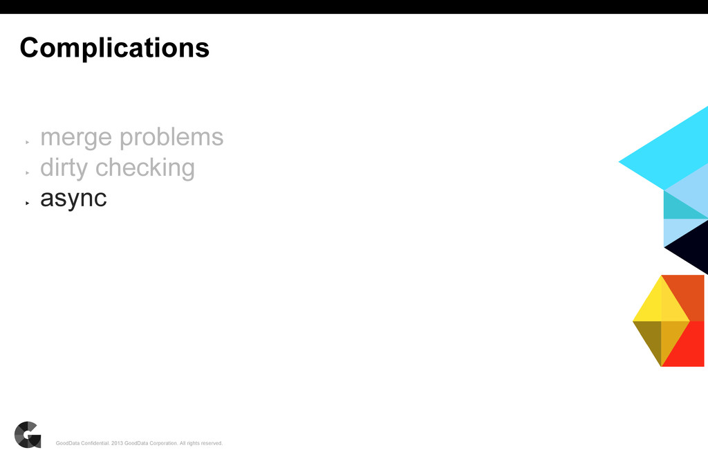 promises ▶ “eventual value returned from completion of operation” function callApi(id) { var promise = longRunningOperation(id); return promise; } //.... callApi(2).then(function(result) { // do sth with resolved result }, function(err) { // do sth with rejection });