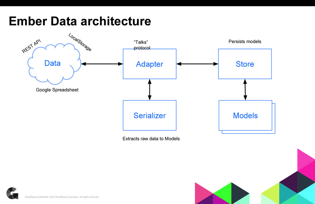 architecture Data REST API LocalStorage Google Spreadsheet Adapter Serializer Store “Talks” protocol Extracts raw data to Models Persists models Models