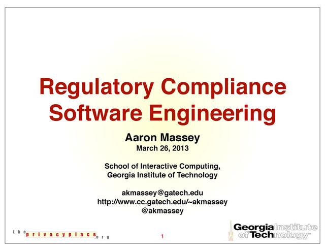 Laws and regulations safeguard citizens’ security and privacy. For example, the Health Insurance Portability and Accountability Act of 1996 (HIPAA) governs the security and privacy of electronic health records (EHR) systems. HIPAA violations can result in millions of dollars in penalties for non-compliance. Ensuring EHR systems are legally compliant is challenging for software engineers because the laws and regulations governing EHR systems are written by policymakers with little to no understanding of software engineering. This presentation introduces the field of Regulatory Compliance Software Engineering and discusses a particular research concern within that field: How can we help software engineers seeking to assess whether security and privacy requirements for EHR systems are legally compliant?