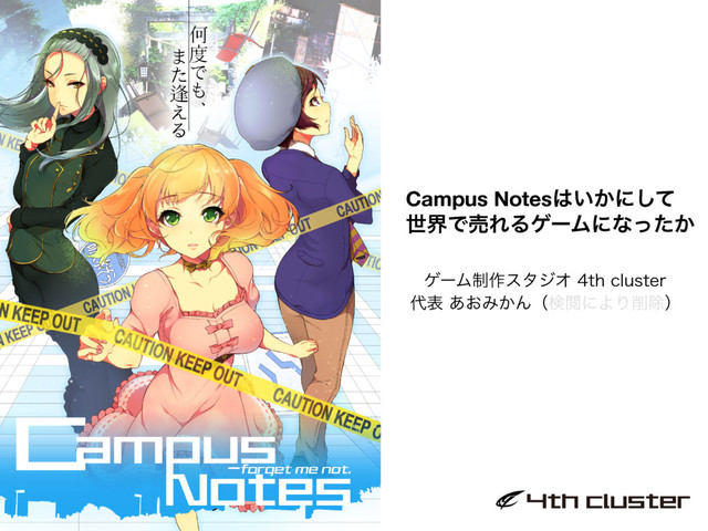 筑波大学主催の「つくばグローバルサイエンスウィーク」内セッション「産官学連携コンテンツビジネスがひらくいばらきと世界の未来」にて発表させて頂いた際の資料です。 セッションプログラムは以下 http://www.kokuren.tsukuba.ac.jp/TGSW2016/program/program_j.html 4th clusterのWebサイトは以下 http://4th-cluster.com