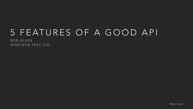 Everyone is writing APIs from micro-services through to full applications, but what makes a good one? In this session we’ll look at five of the more important features that you should think about when creating an API. These are the features that ensure that your API plays well with HTTP and, more importantly, make your API a delight to maintain and work with. I want you to ensure that your API is a good HTTP citizen, while also providing developer-friendly features like thought