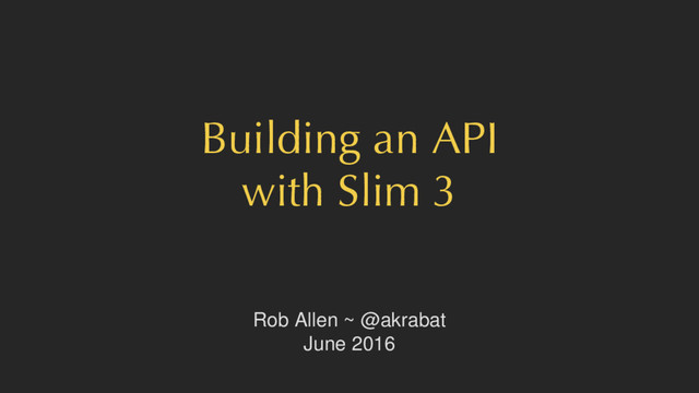 Slim 3 builds on the PSR-7 HTTP message interfaces and provides useful features such as routing, and a DI container. It's very lightweight and so is an ideal platform for building an API. In this talk, we look at how to use Slim 3 as the basis for your API.