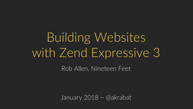 Zend Expressive 3 is the ideal framework for building PHP applications of all types. Its easy-to-understand architecture makes it ideal for projects of all shapes and sizes. In this talk, I'll show you how to build an Expressive application than can scale with your needs. We will look at how Expressive's middleware system leverages the upcoming PSR-15 specification to create easily understandable and flexible applications. We will cover application setup, routing and error handling before diving into some thoughts on how architect an Expressive application. By the end of the session, you will be equipped to create Expressive applications yourself.