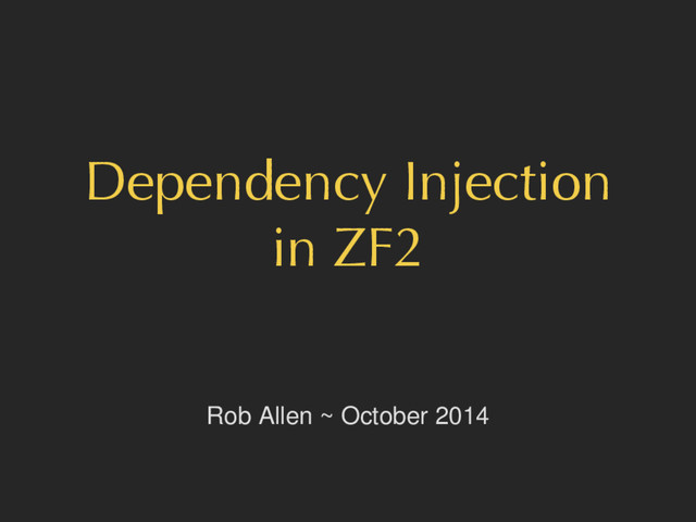 The Dependency Injection pattern separates the creation of objects and their dependencies. This session will look at what Dependency Injection is, how it is integral to Zend Framework 2 and the benefits that it brings. We’ll then look at how Zend\ ServiceManager works and how to make best use of it within your application.