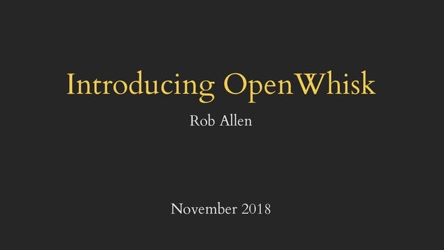 Apache OpenWhisk is an Open Source serverless platform suited to a wide range of applications from IoT & chatbots through to microservices and web hooks. In this session, I’ll introduce OpenWhisk and show you how it works.