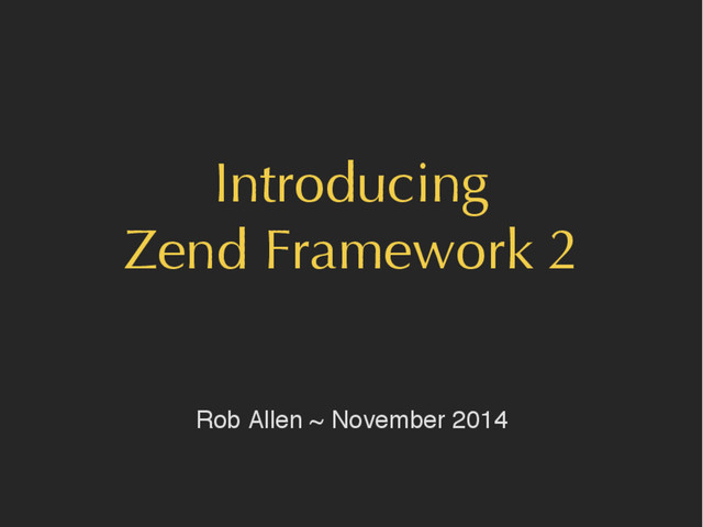We will cover configuration, service location, modules, routing and the MVC system to provide a clear introduction to the key elements of a Zend Framework 2 application.