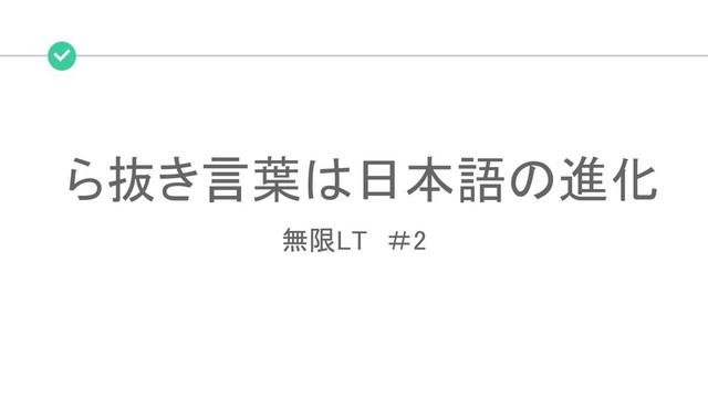 LTのゴール • 普段使っている日本語について考えてみる ◦ ら抜き言葉は日本語が進化した結果