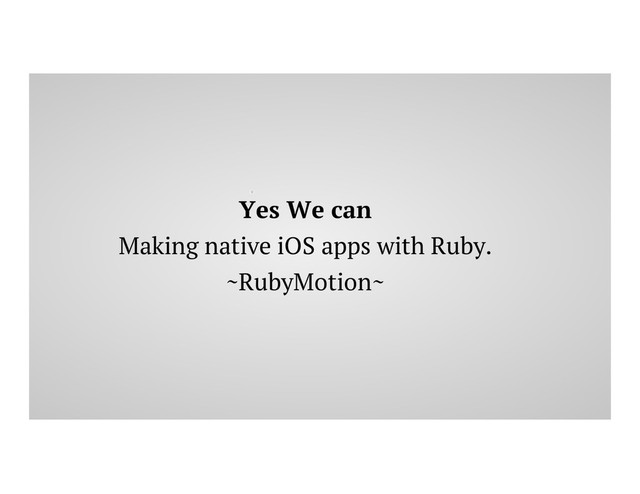 Ruby developers are no longer an outcast for creating pure native iOS applications. With revolutionary tool chain RubyMotion, we can now make use of every bit of powerful iOS SDK and the best part of this is without using Xcode ;)