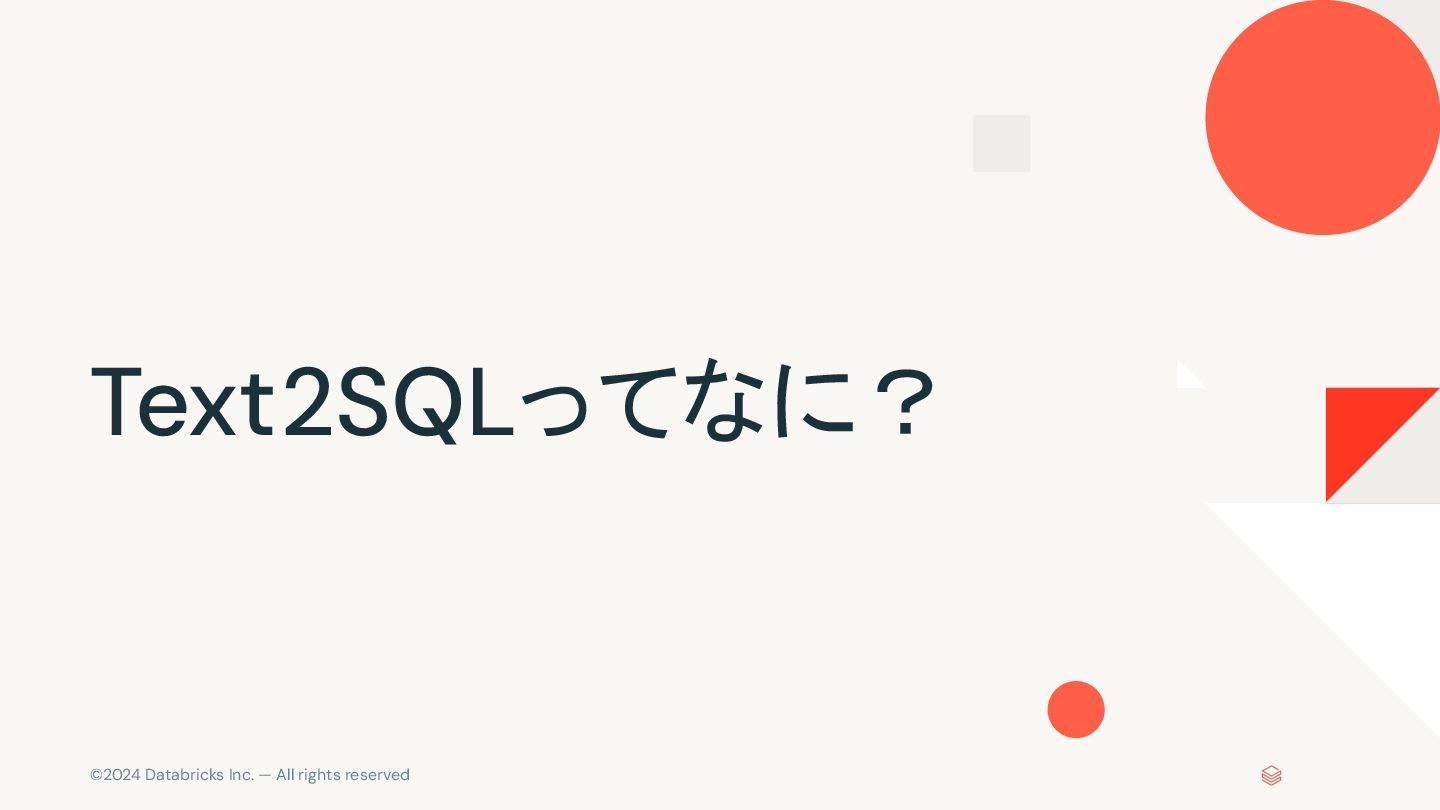 ©2024 Databricks Inc. — All rights reserved Text2SQLってなに?