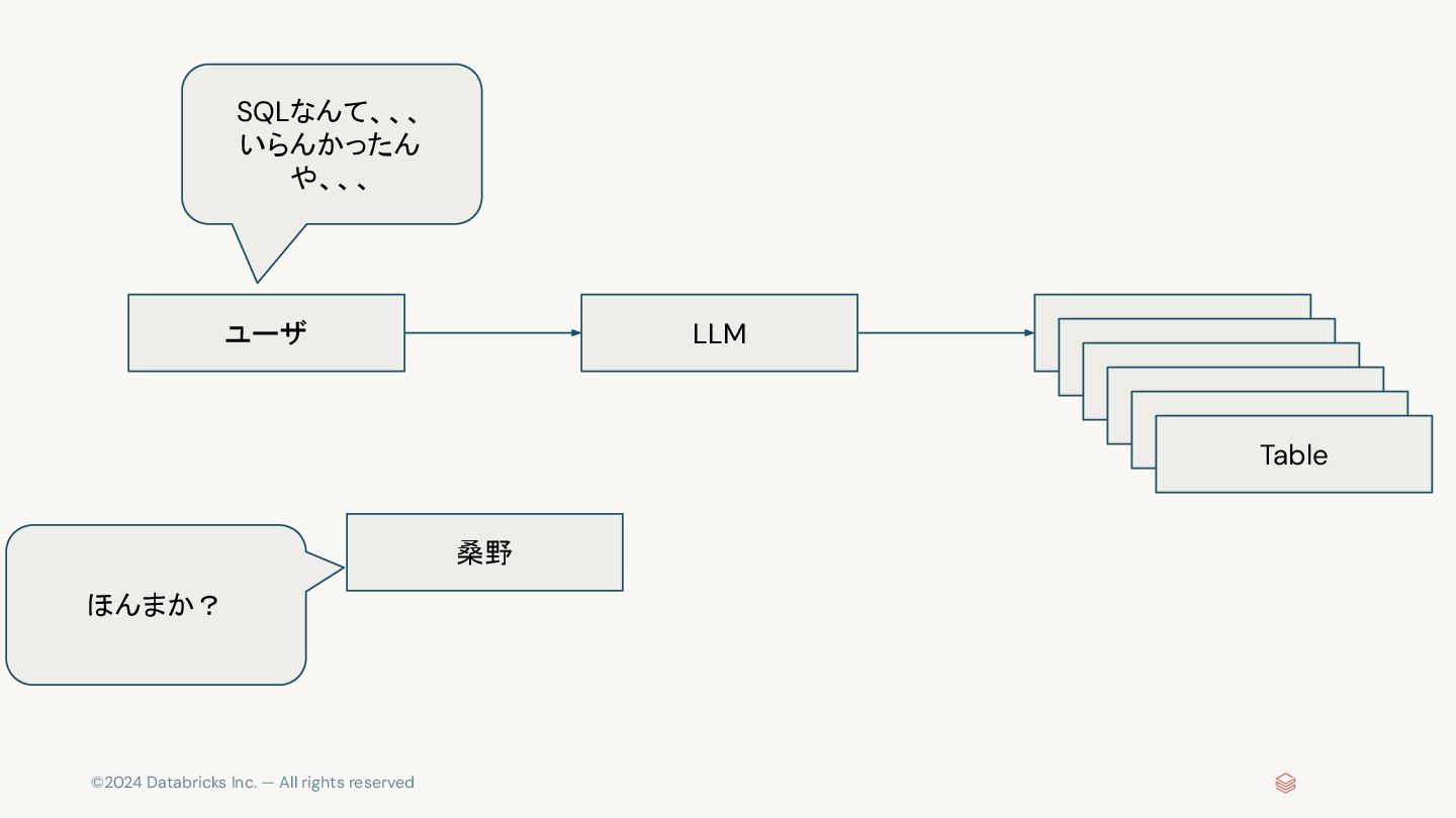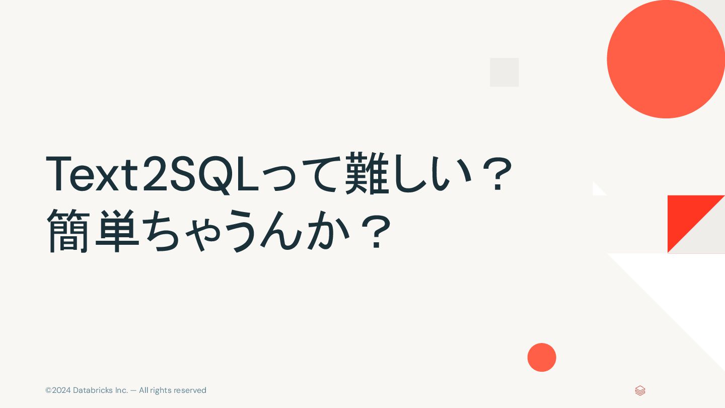 ©2024 Databricks Inc. — All rights reserved Text2SQLって難しい? 簡単ちゃうんか?