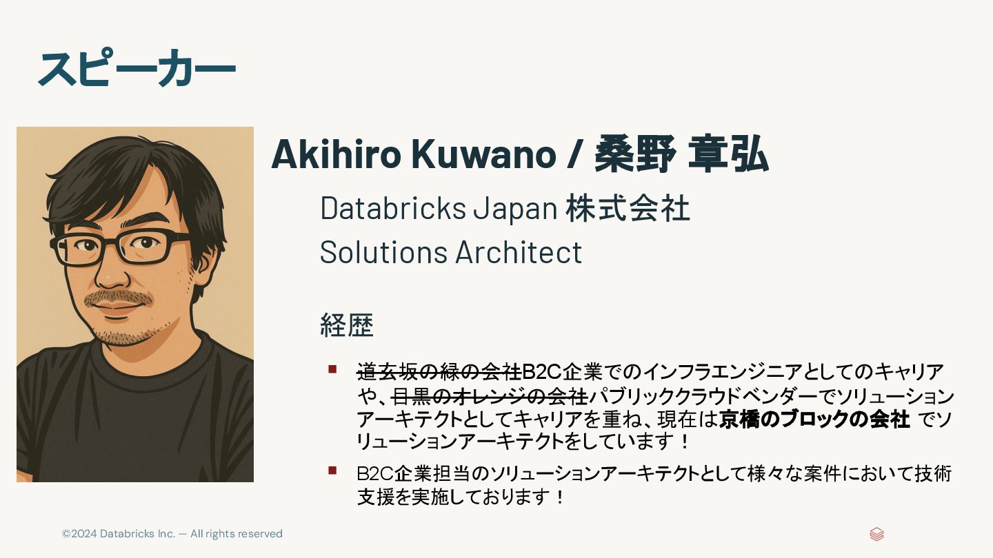 ©2024 Databricks Inc. — All rights reserved スピーカー Akihiro Kuwano