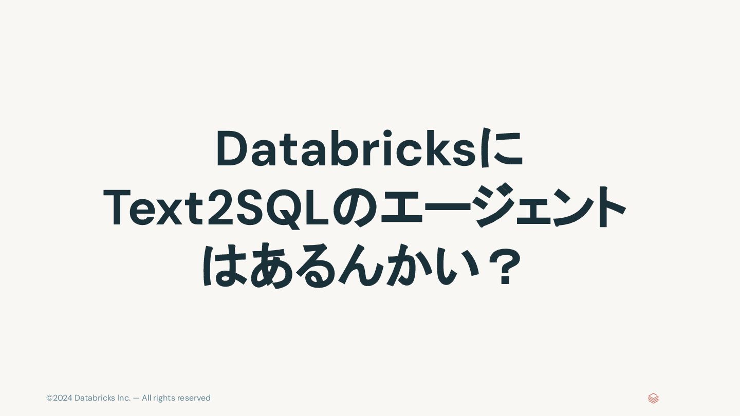 ©2024 Databricks Inc. — All rights reserved Databricksに Text2SQLのエージェント はあるんかい?