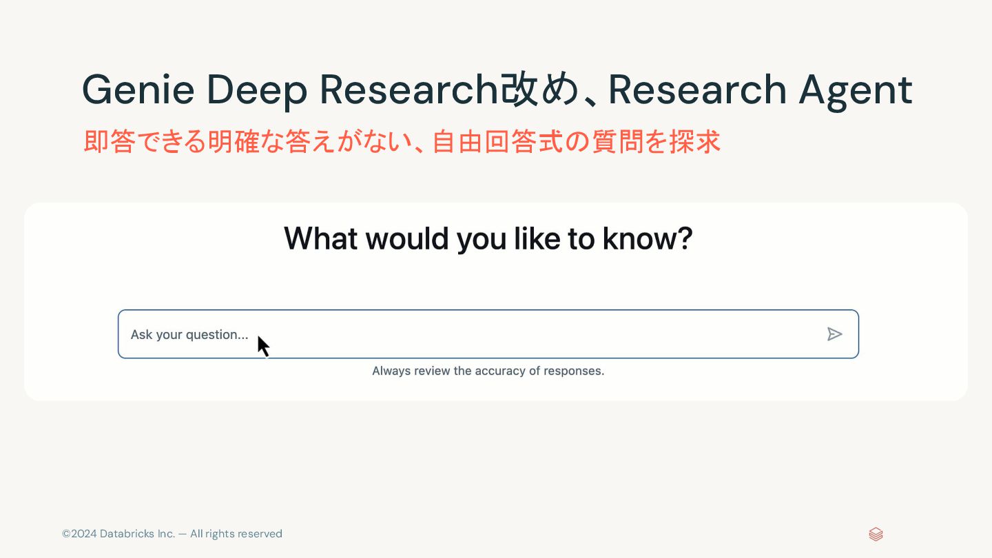©2024 Databricks Inc. — All rights reserved Genie Deep Research改め、Research
