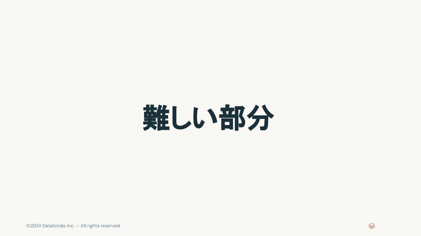 ©2024 Databricks Inc. — All rights reserved 難しい部分