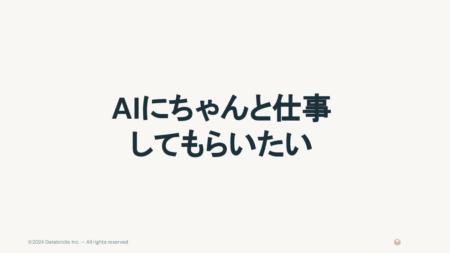 ©2024 Databricks Inc. — All rights reserved AIにちゃんと仕事 してもらいたい