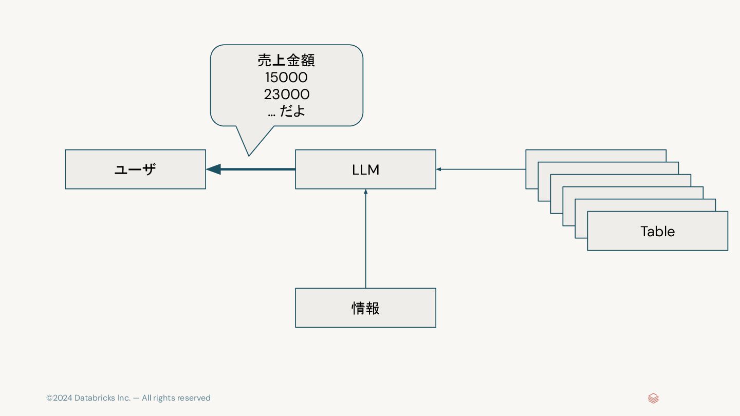 ©2024 Databricks Inc. — All rights reserved ユーザ LLM Table