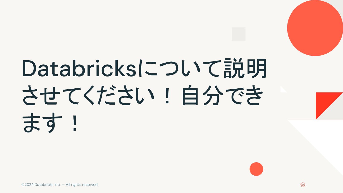 ©2024 Databricks Inc. — All rights reserved Databricksについて説明 させてください!自分でき ます!