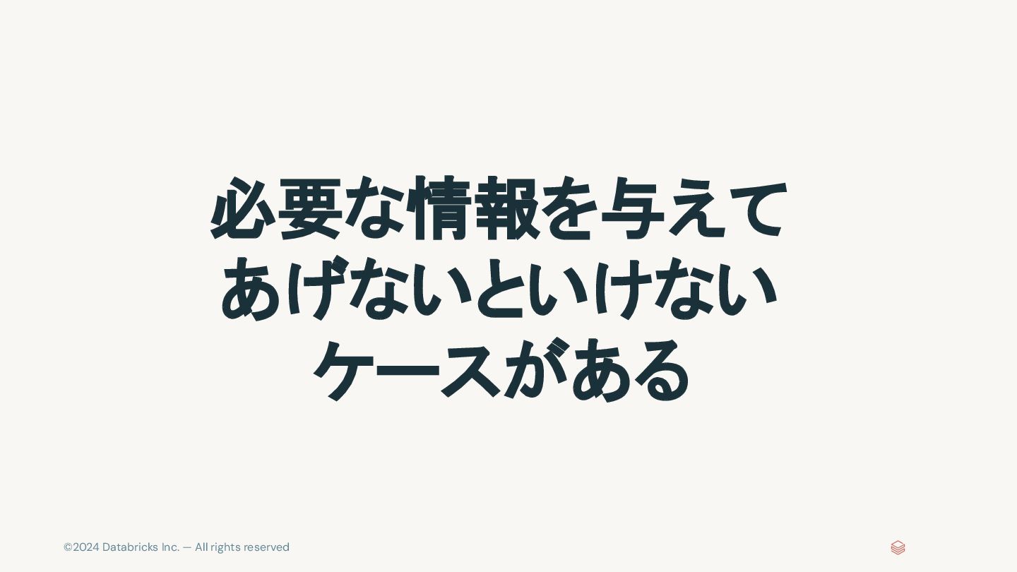 ©2024 Databricks Inc. — All rights reserved 必要な情報を与えて あげないといけない ケースがある