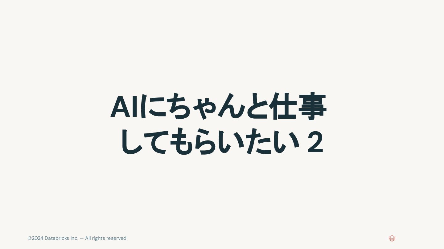 ©2024 Databricks Inc. — All rights reserved AIにちゃんと仕事 してもらいたい 2