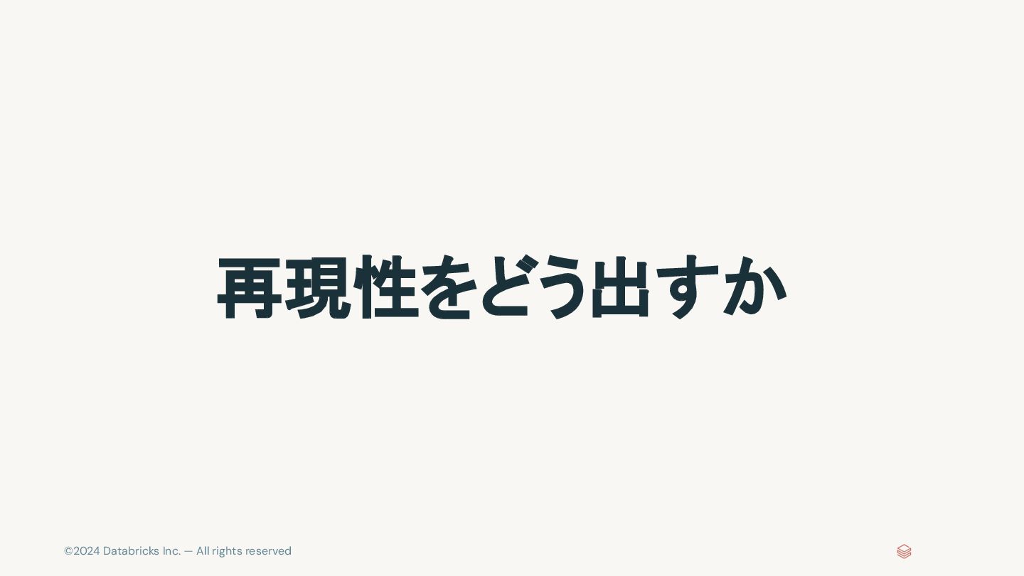 ©2024 Databricks Inc. — All rights reserved 再現性をどう出すか
