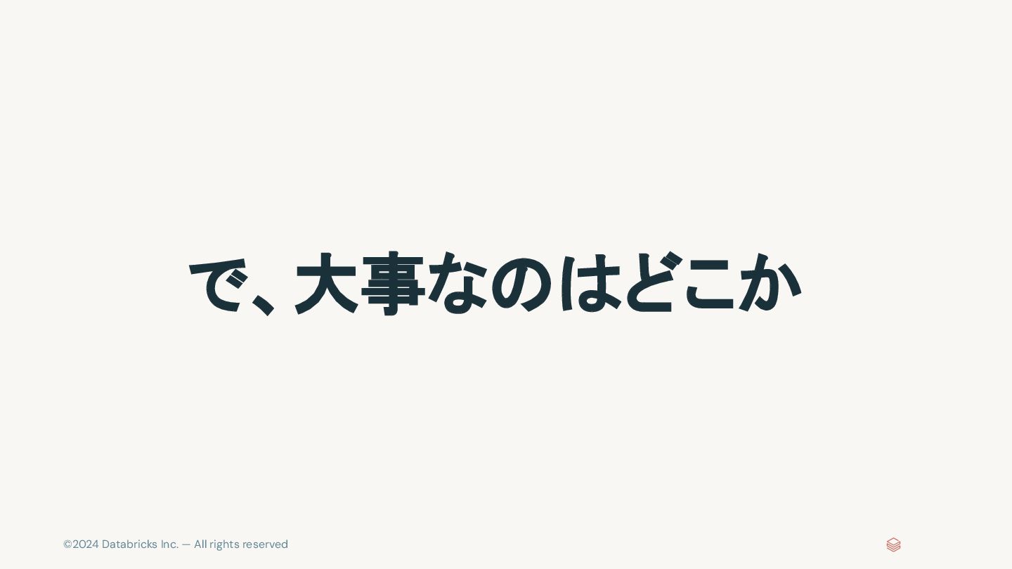 ©2024 Databricks Inc. — All rights reserved で、大事なのはどこか