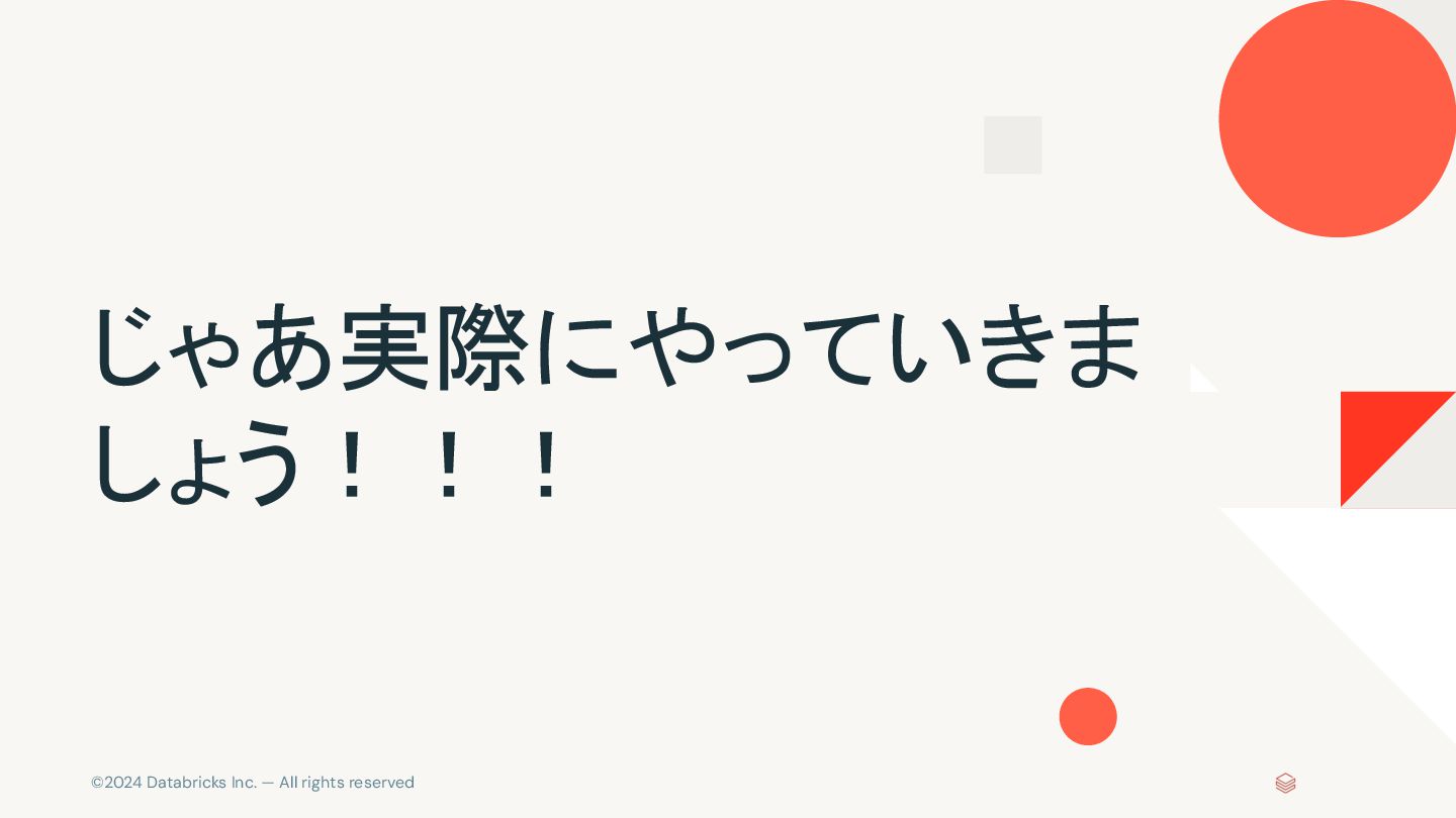 ©2024 Databricks Inc. — All rights reserved じゃあ実際にやっていきま しょう!!!