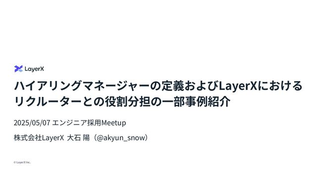 2025/5/7に行ったエンジニア採用Meetup:リクルーターとハイアリングマネージャーの役割分担で登壇に使用したスライドです。 イベントURL: https://layerx.connpass.com/event/351949/