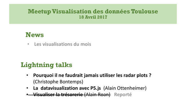 MeetupVisualisation des données Toulouse 18 Avril 2017 News Lightning talks