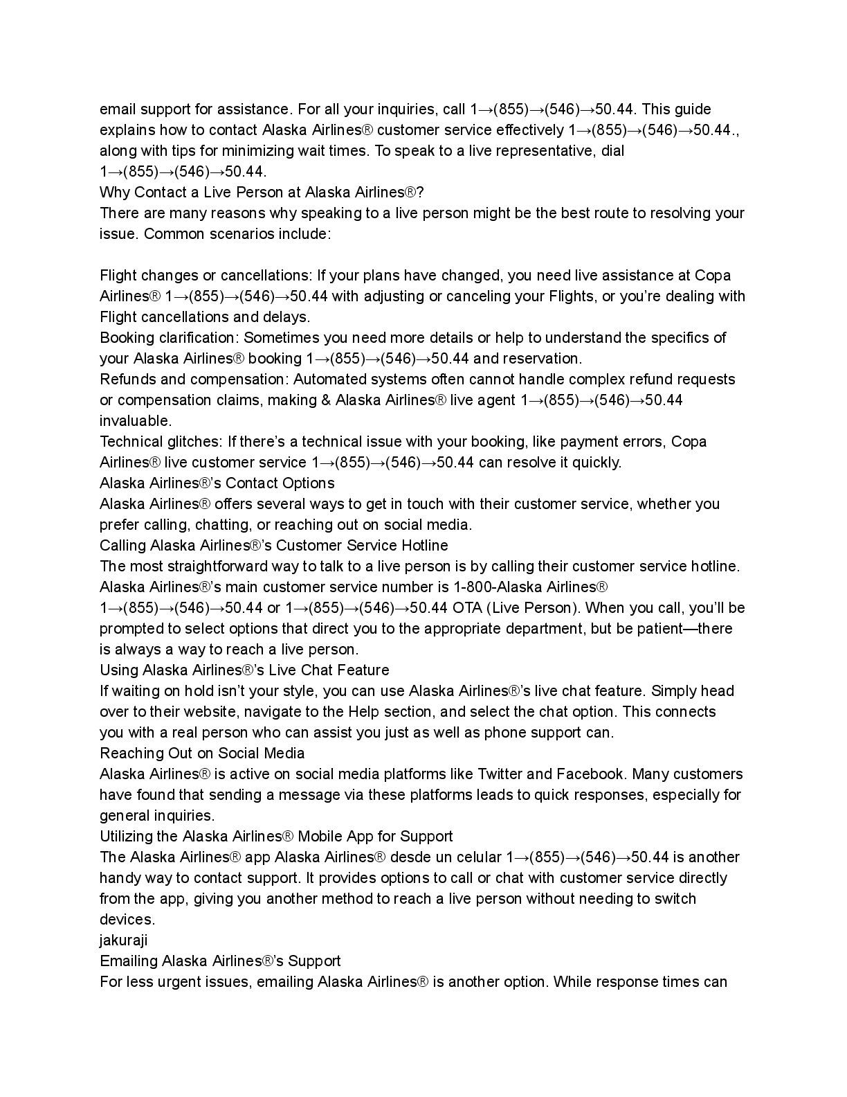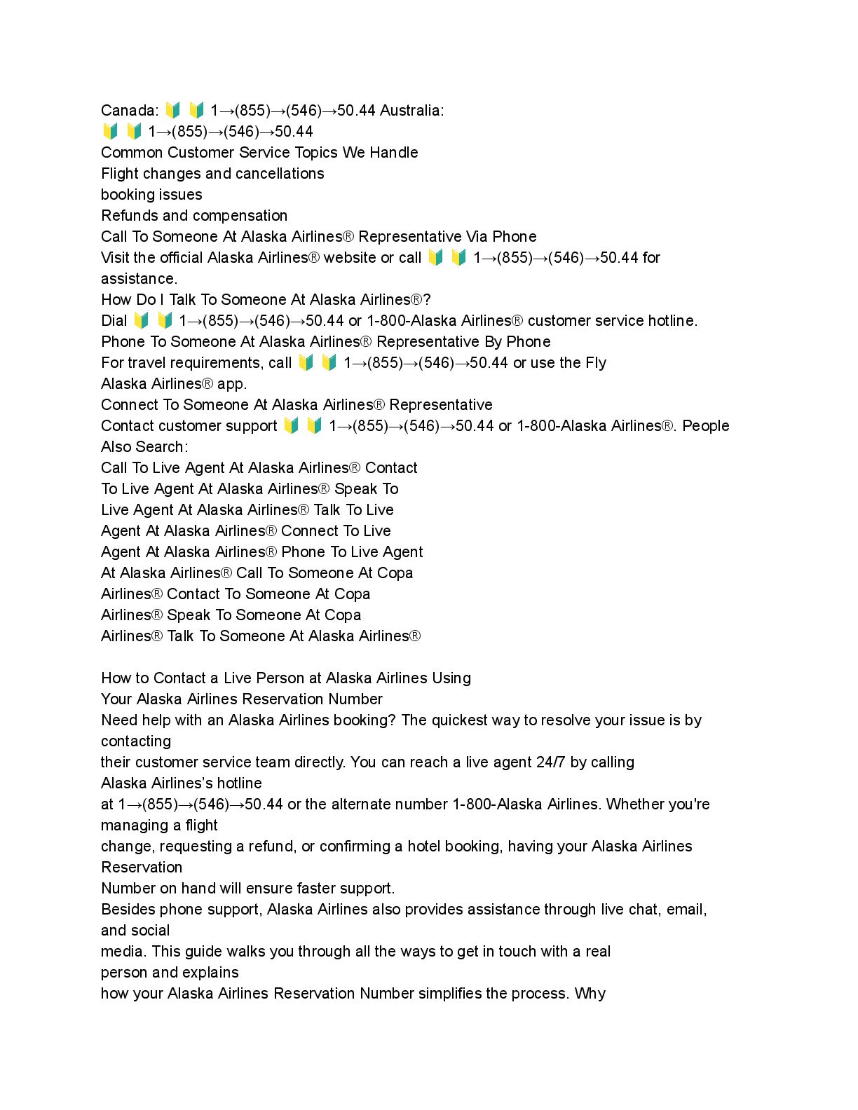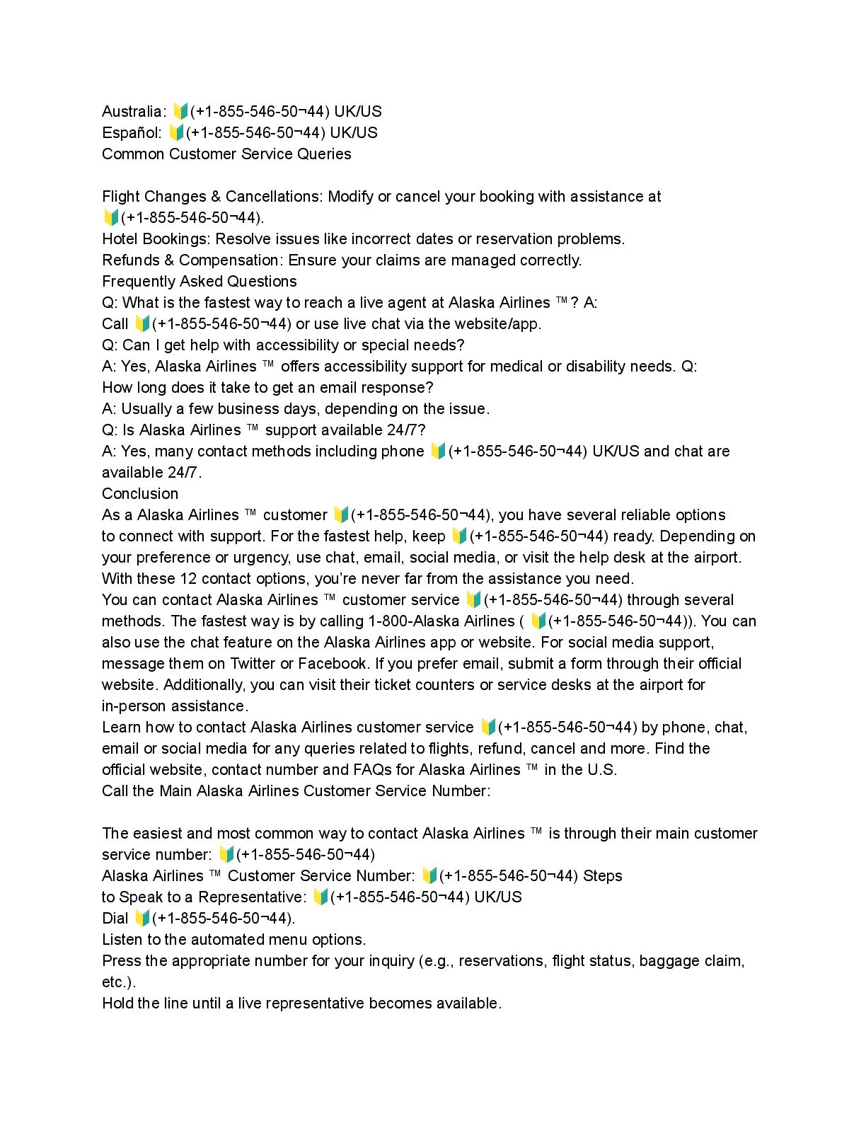 Alaska™️ Airlines®️ official customer service number is 🔰1-833-(623)-8O24 , where you can speak directly to a live representative any time of the day. Whether you’re facing flight issues, hotel changes, cancellations, or need help with a refund, this guide gives you all the ways to connect with Alaska™️ Airlines®️ quickly and easily.