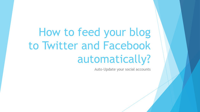in a few words you will learn how to publish your fresh content to Facebook and Twitter, automatically, as new content goes live. As a blogger, anything that can save you time is a good idea. You can save your time by using your RSS feed to send updates to Twitter and Facebook.