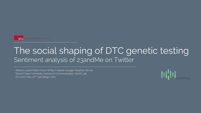 Scholars, educators, regulators, pundits and other observers are advocating for regulation and oversight of ‘direct-to-consumer’ genomic testing (DTC). As a result, the technology has been subject of much public and regulatory controversy. In this article, we explore the sentiment about the DTC company, 23andMe. To describe the nature of the public opinion, we collected Twitter data of over 2000 tweets for a quantitative content analysis and qualitative framing analysis. Our analysis reviews particular frames that seem to underlie social media exchanges related to the company and its technology. Our study shows that people are largely positive towards DTC genomics and 23andMe. We argue that these frames create meaning and play a role in how a technology is interpreted by its users. As social research becomes increasingly driven by large data sets and internet-based research methods, we offer a timely, non-invasive analysis of emerging values associated with DTC genetic testing.