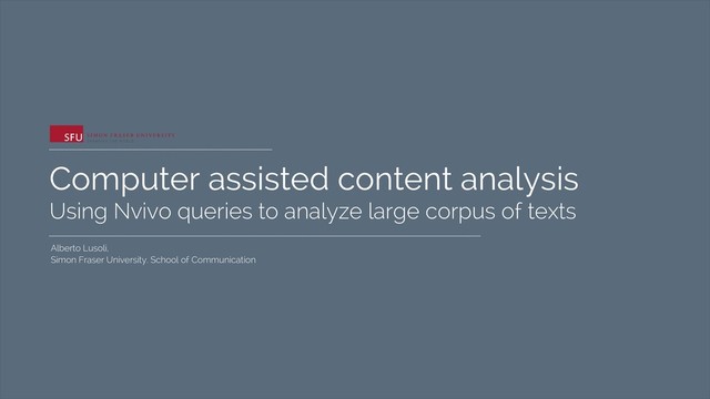 corpus of texts Alberto Lusoli, Simon Fraser University. School of Communication