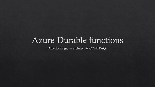 hidden 3. It is designed and implemented following cloud patterns (event sourcing, claim-check, partitioning) 4. Define workflow through code. No JSON, no yaml, no designer 5. Work with tasks -instead of queues and event sourcing tables- which is a more comfortable environment for devs. 6. Many important patterns become trivial to implement: fan in/fan out, http client status polling 7. Serverless advantages: scalability and billing. 8. Seems ready for SAGA (we haven’t seen it yet).