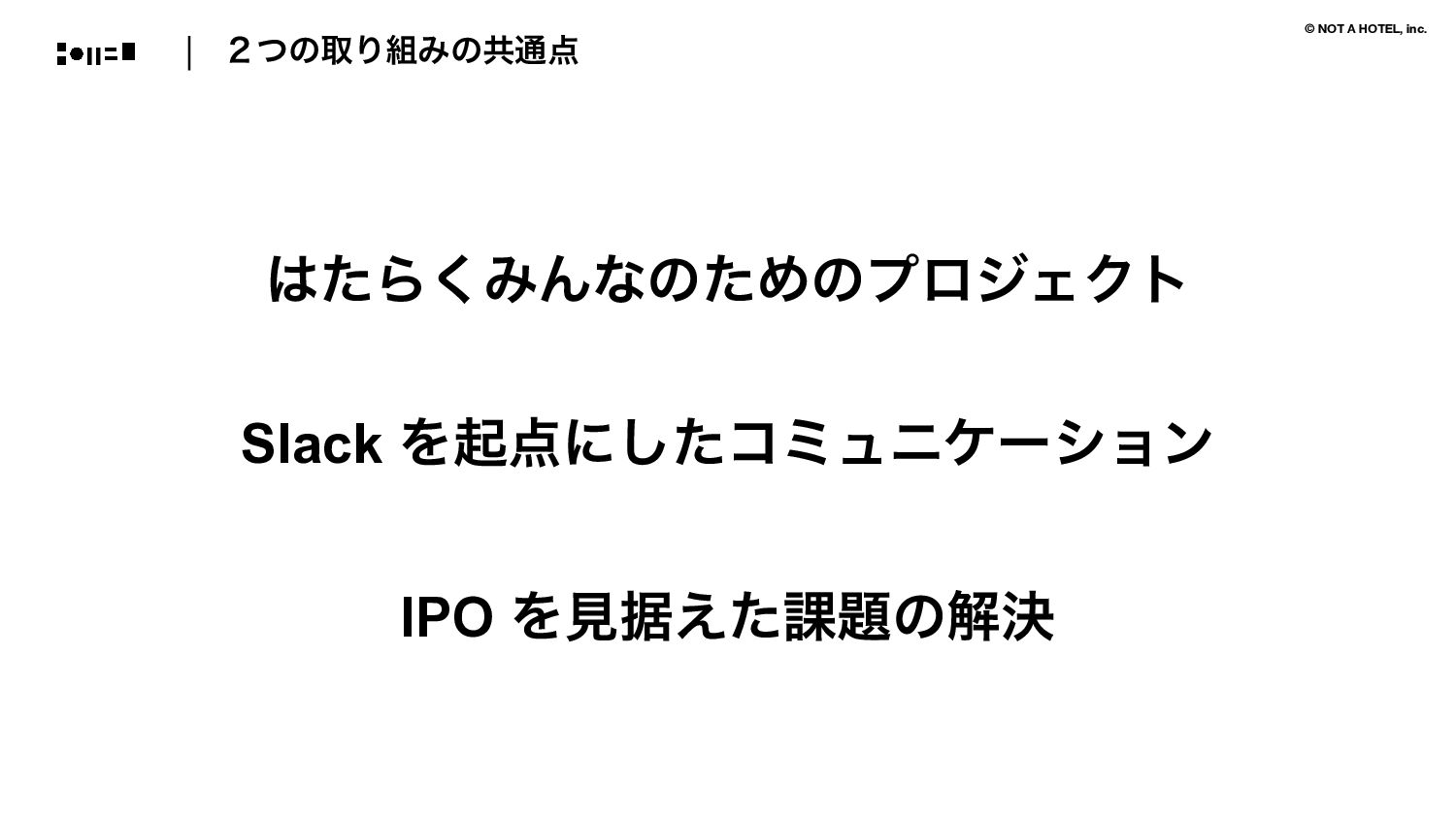 © NOT A HOTEL, inc. ͨΒ͘ΈΜͳͷͨΊͷϓϩδΣΫτ Slack Λىʹͨ͠ίϛϡχέʔγϣϯ IPO Λݟਾ͑ͨ՝ͷղܾ