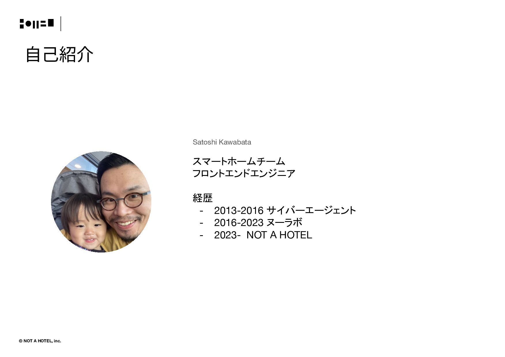© NOT A HOTEL, inc. ⾃⼰紹介 Satoshi Kawabata スマートホームチーム フロントエンドエンジニア