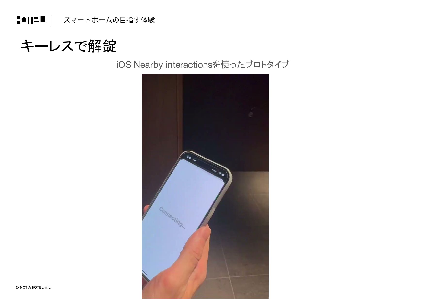 © NOT A HOTEL, inc. キーレスで解錠 スマートホームの⽬指す体験 iOS Nearby interactionsを使ったプロトタイプ