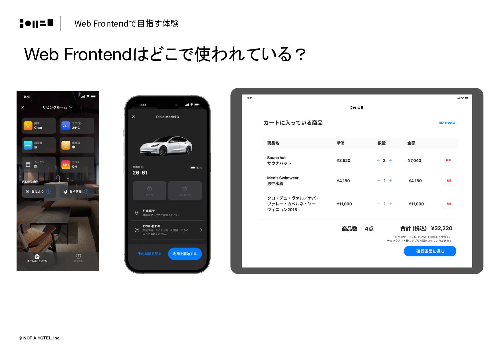 © NOT A HOTEL, inc. Web Frontendで⽬指す体験 Web Frontendはどこで使われている?