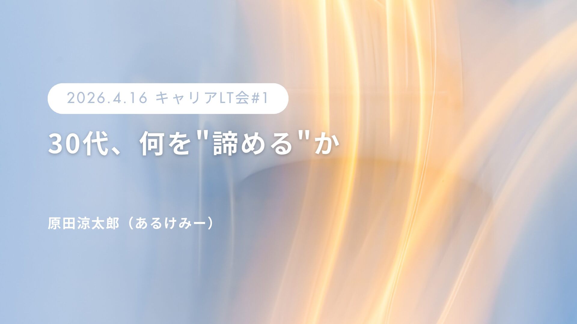 2026.4.16 キャリアLT 会#1 30代、何を"諦める"か 30代、何を"諦める"か 原田涼太郎(あるけみー)