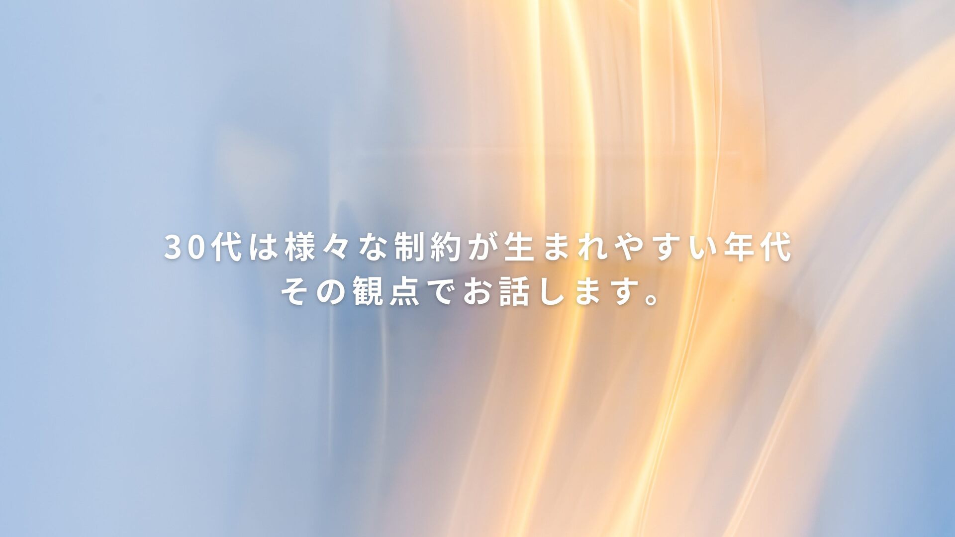 30代は様々な制約が生まれやすい年代 その観点でお話します。 30代は様々な制約が生まれやすい年代 その観点でお話します。
