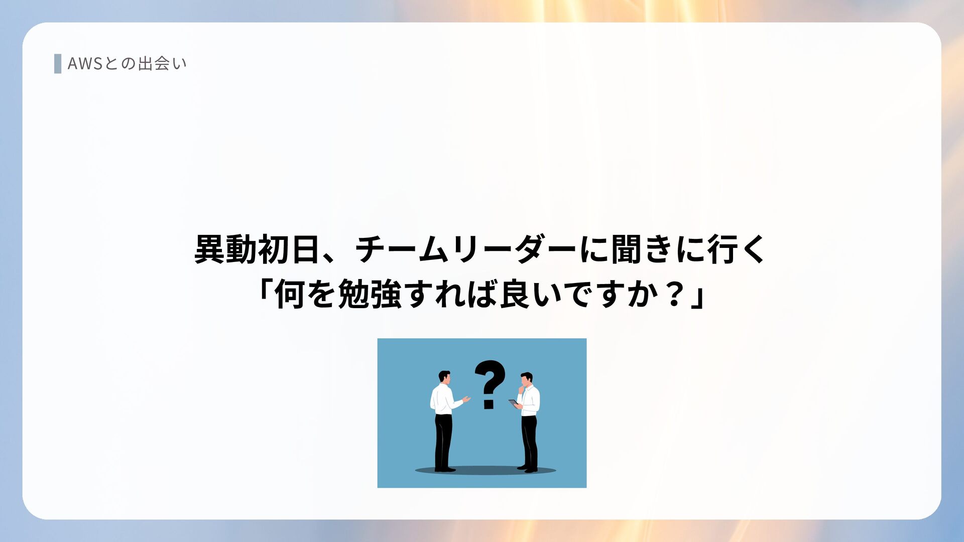 AWSとの出会い 異動初日、チームリーダーに聞きに行く 「何を勉強すれば良いですか?」