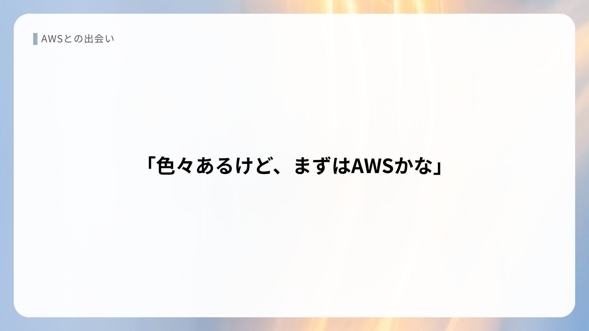 AWSとの出会い 「色々あるけど、まずはAWSかな」