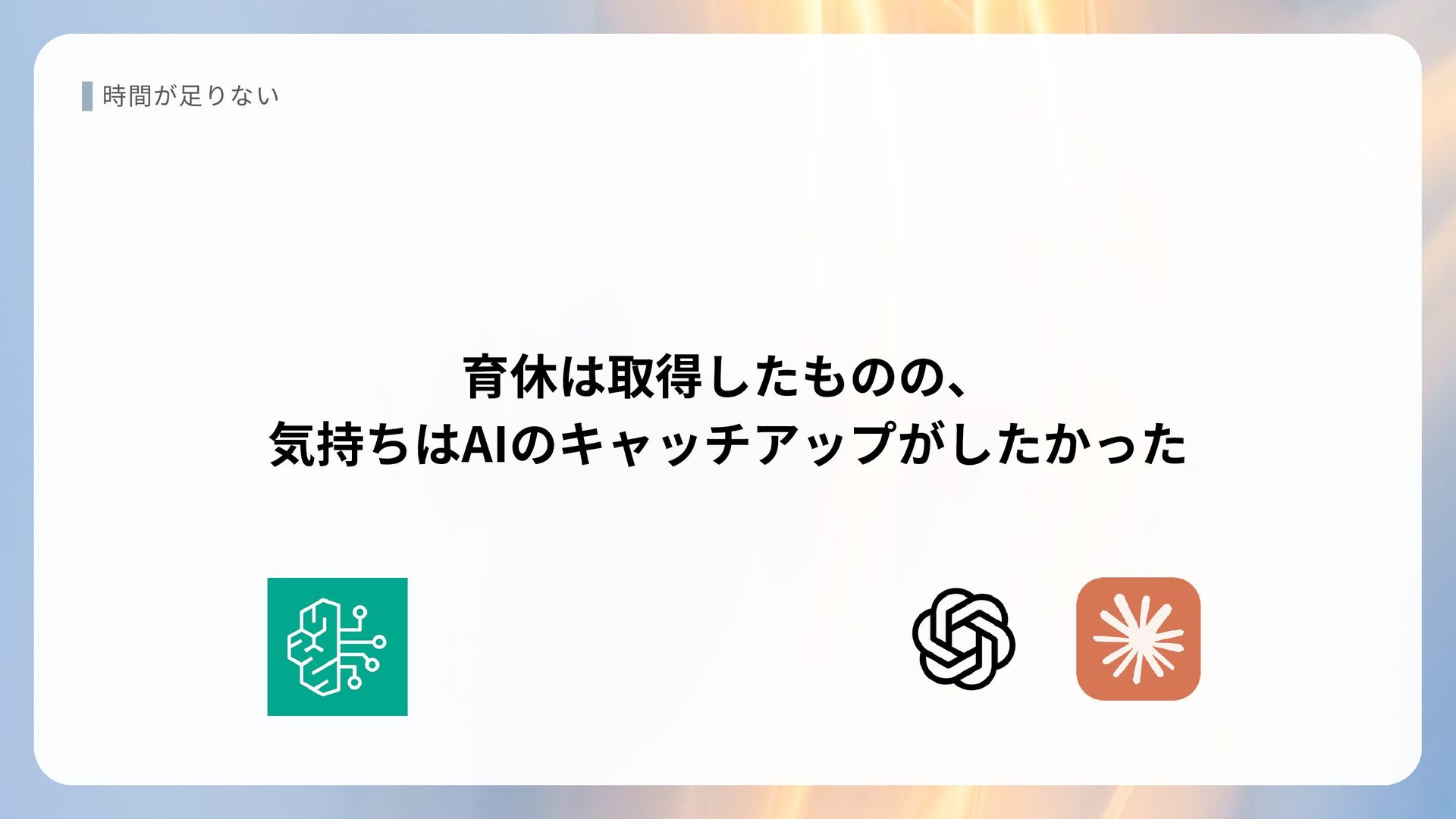 時間が足りない 育休は取得したものの、 気持ちはAIのキャッチアップがしたかった