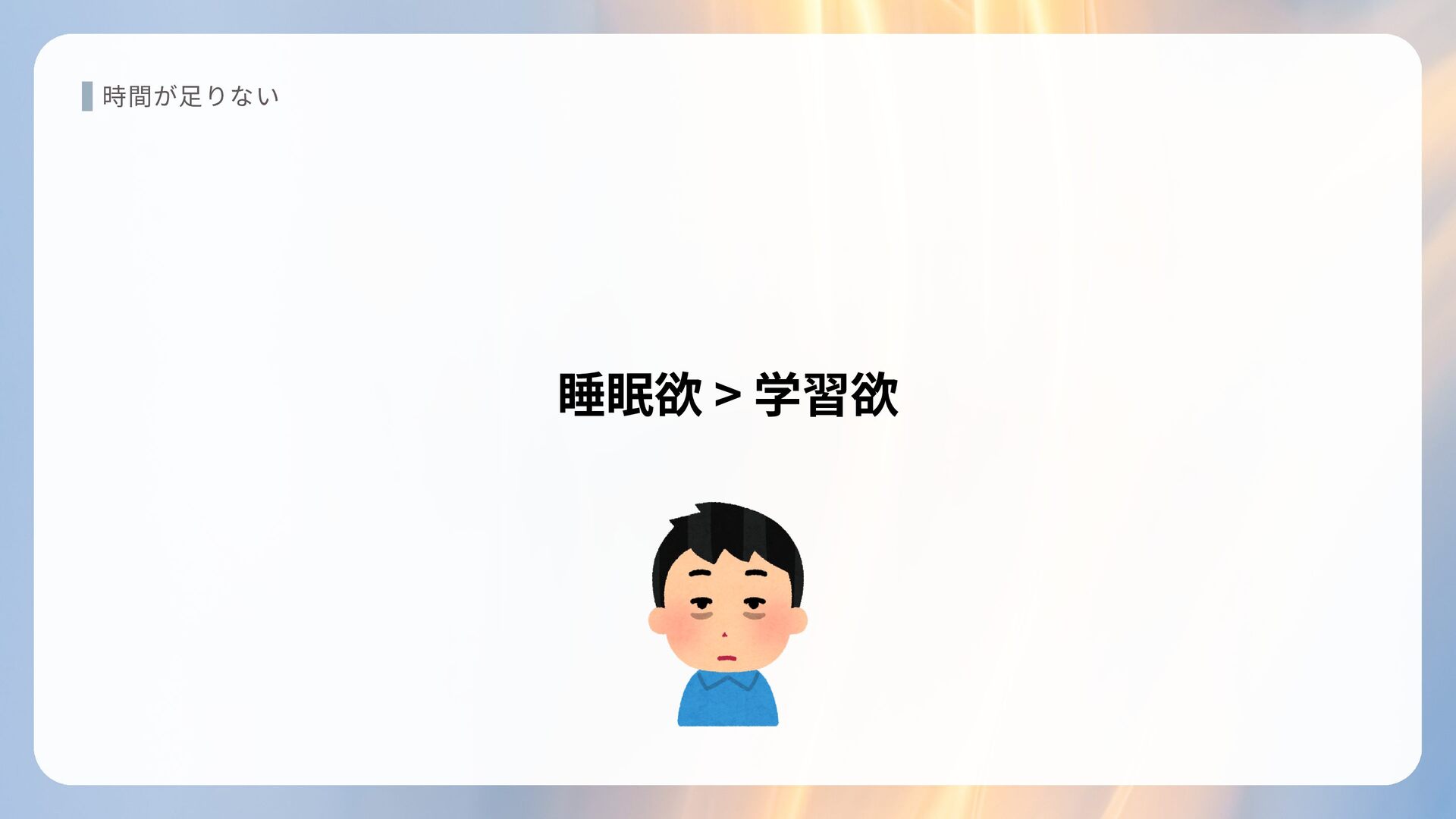 時間が足りない 睡眠欲 > 学習欲