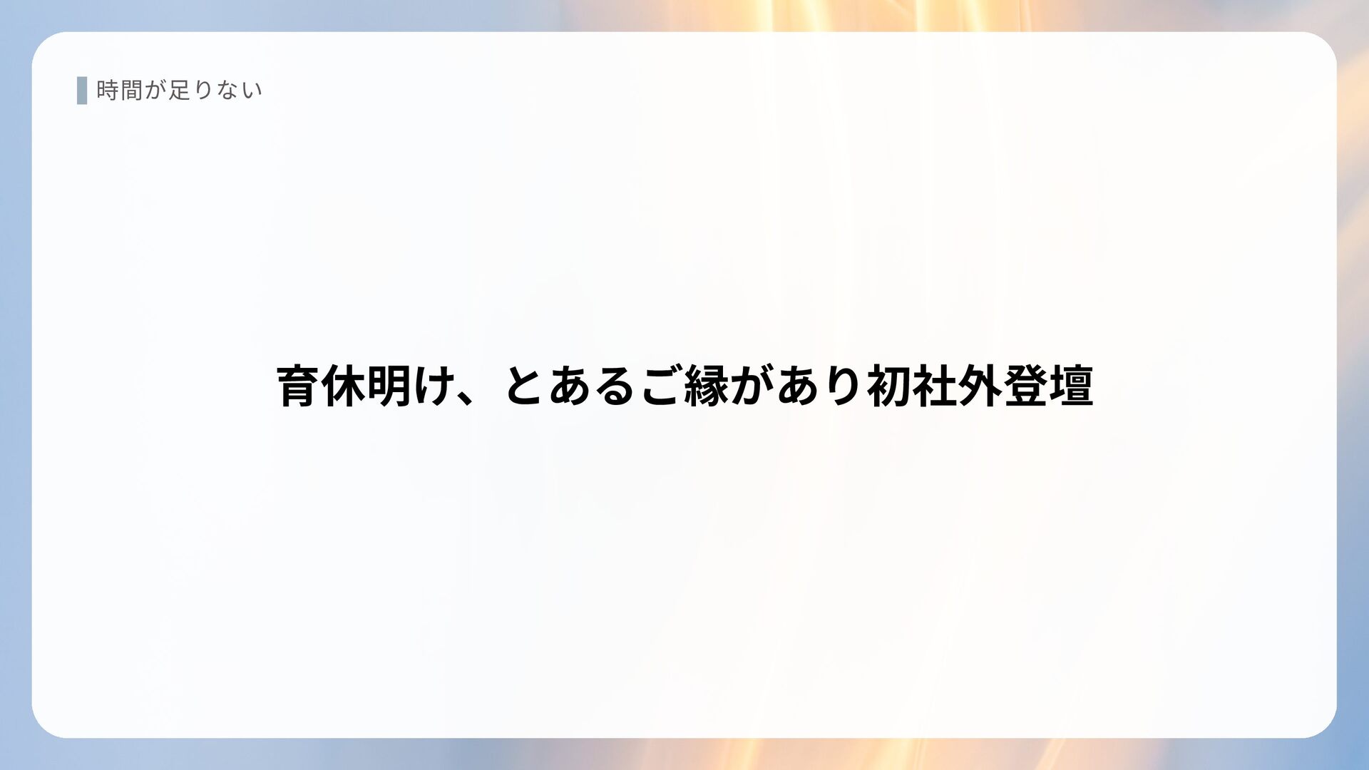 時間が足りない 育休明け、とあるご縁があり初社外登壇