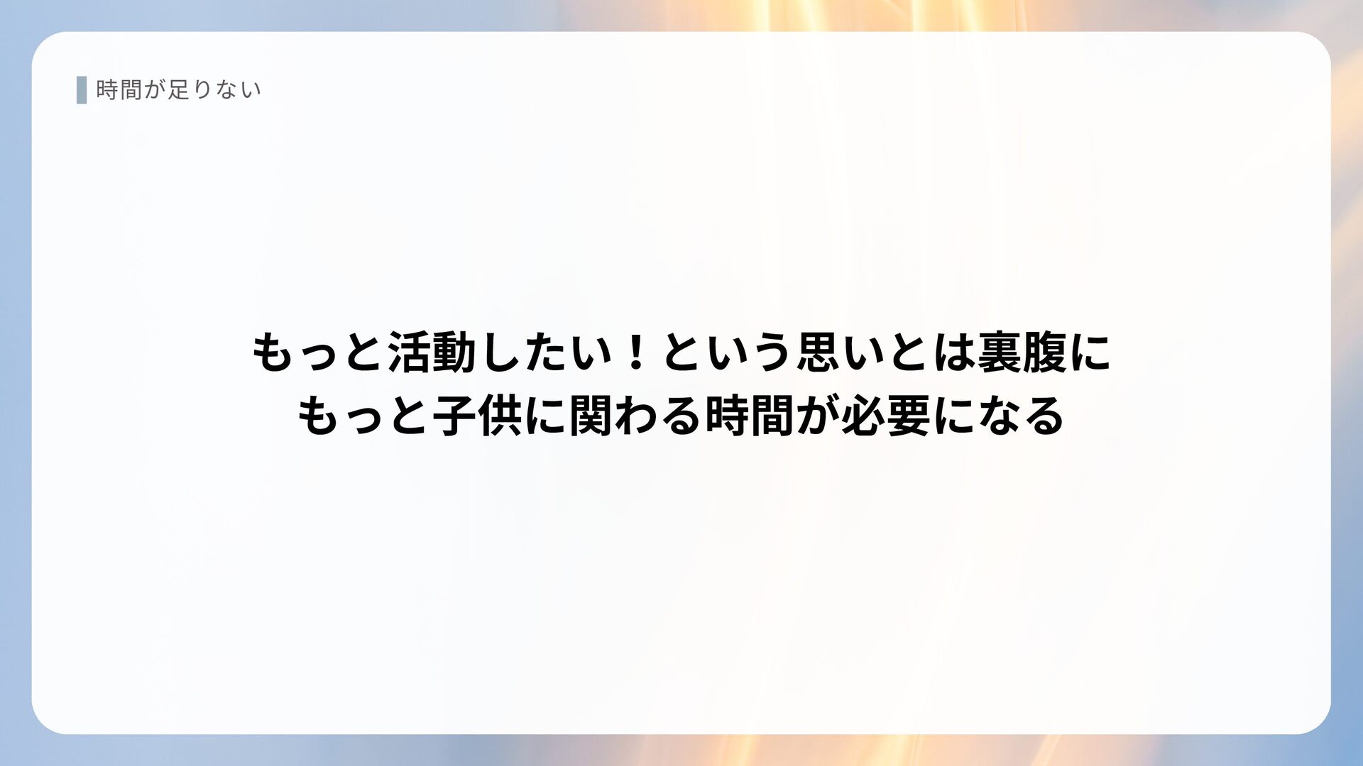 時間が足りない もっと活動したい!という思いとは裏腹に もっと子供に関わる時間が必要になる