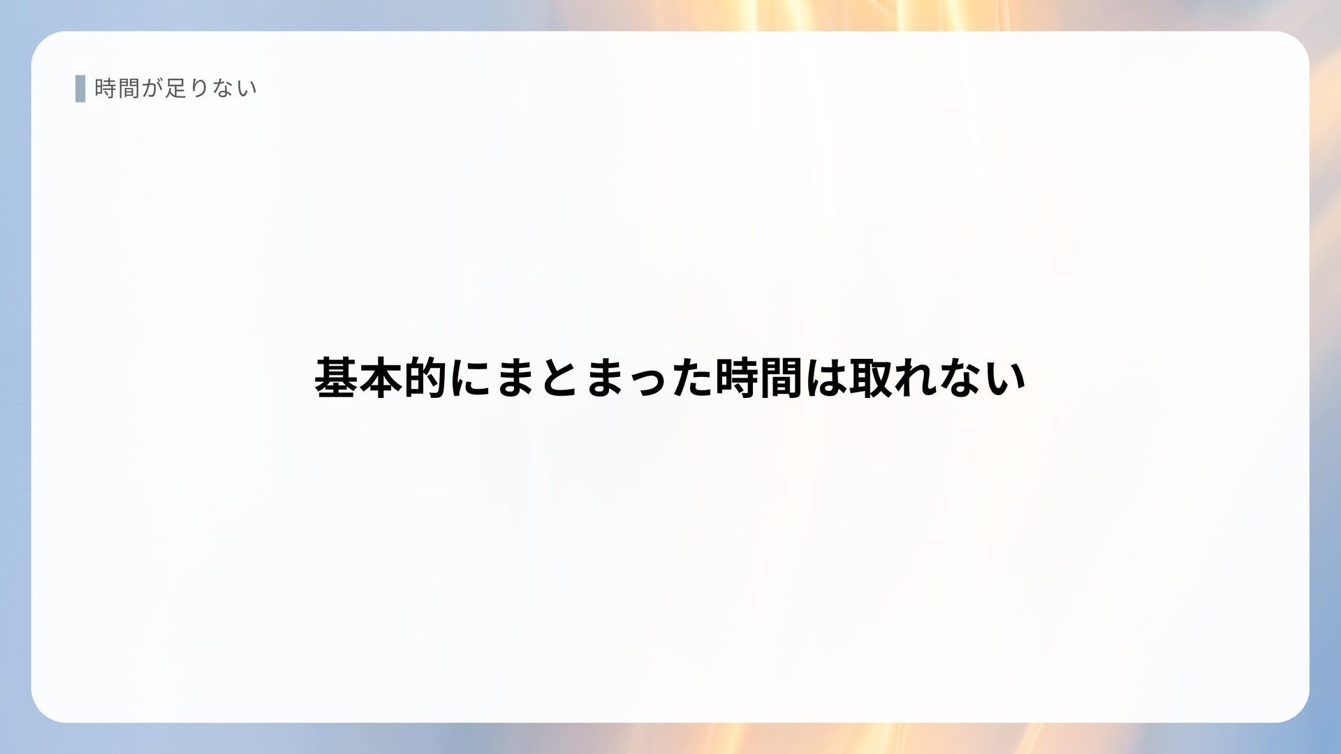 時間が足りない 基本的にまとまった時間は取れない