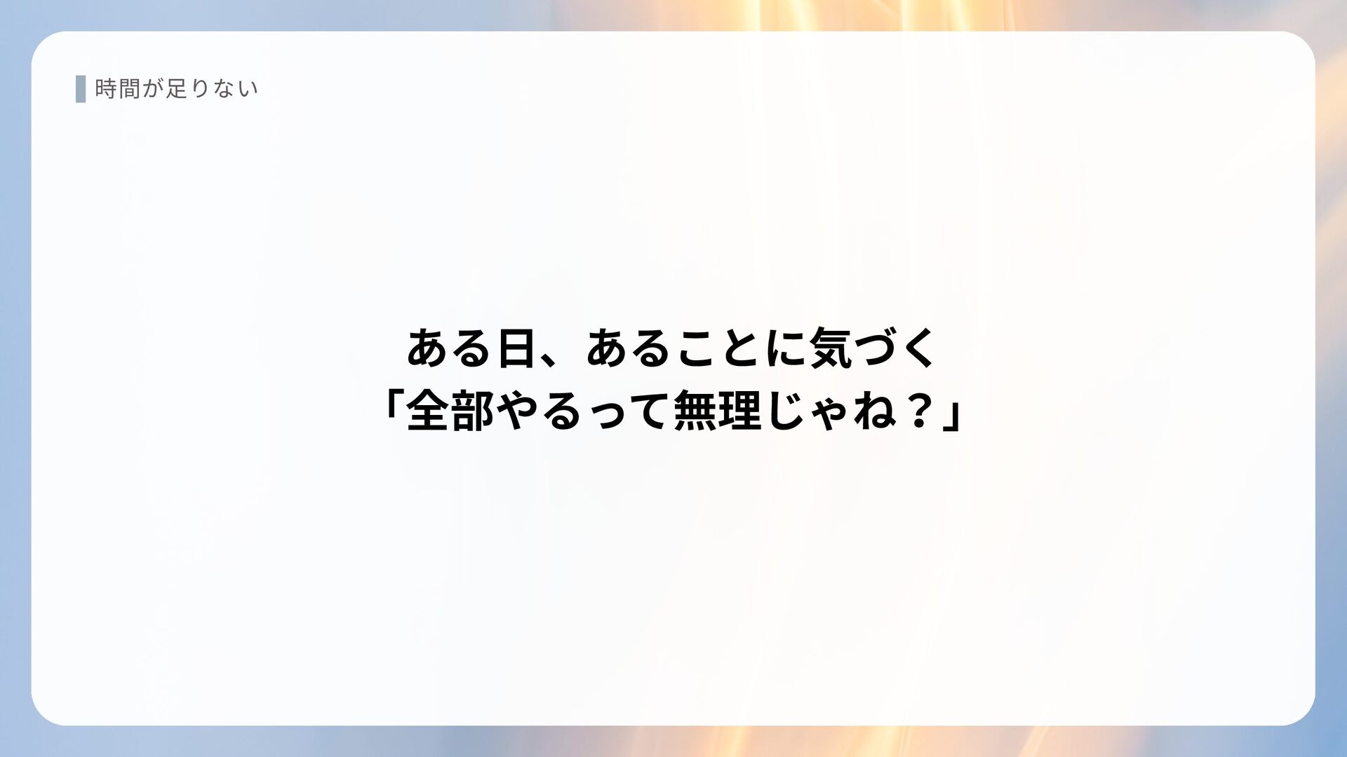 時間が足りない ある日、あることに気づく 「全部やるって無理じゃね?」
