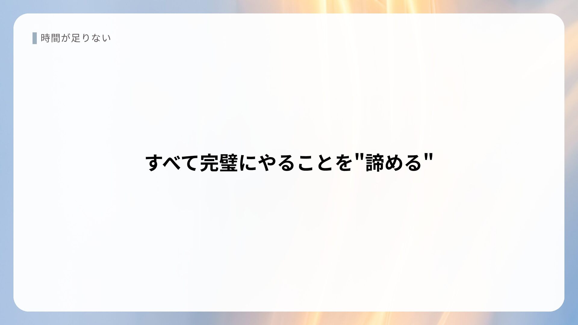 時間が足りない すべて完璧にやることを"諦める"
