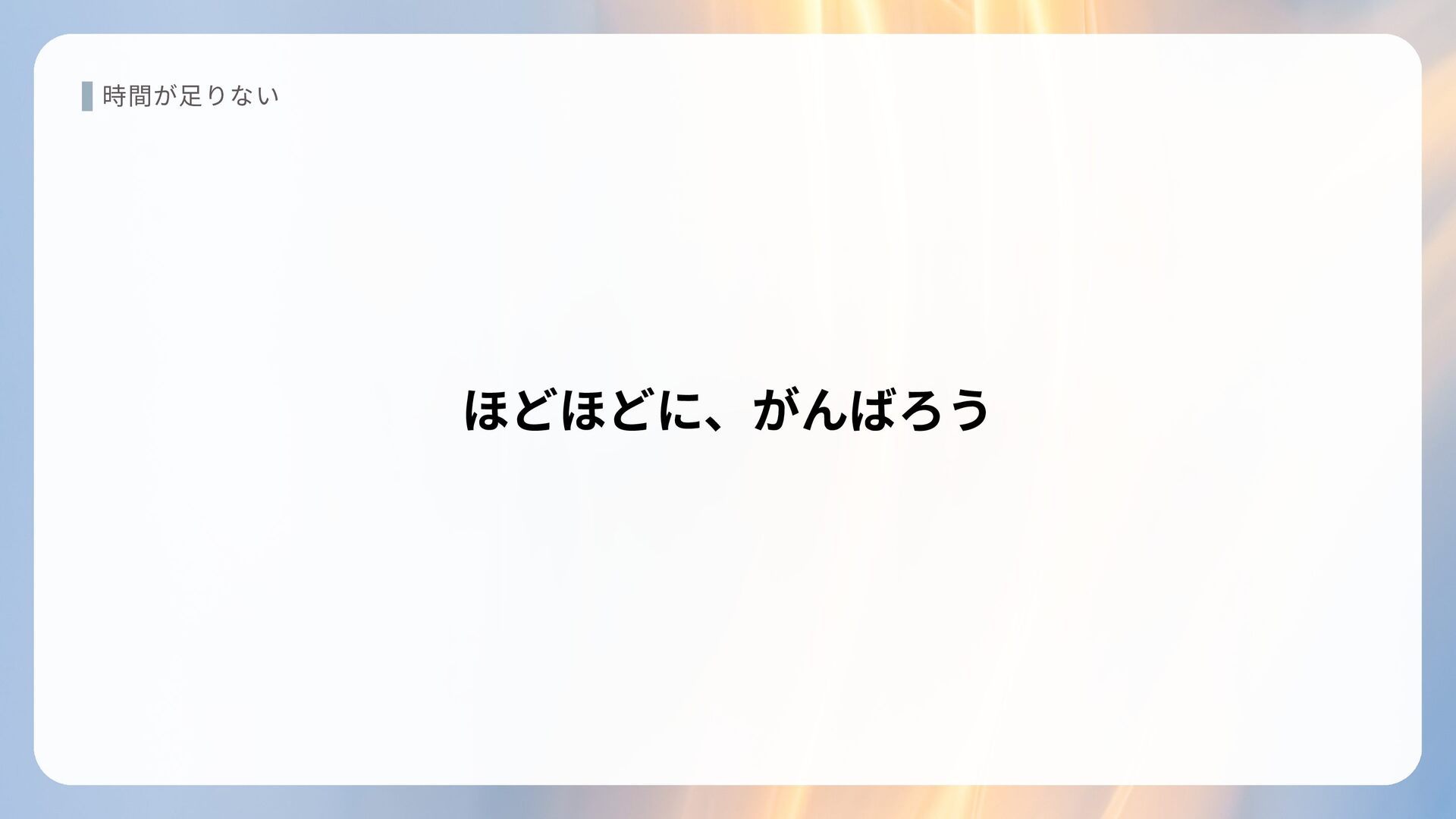 時間が足りない ほどほどに、がんばろう